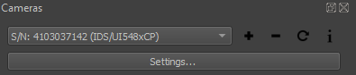 Connect to the cameras using the camera button. You have to see a live preview of one camera. If not, check the connection with the camera driver software, and try to connect again.