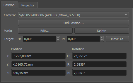 Add positions for each camera in Positions table and detect their position using Position Finder.