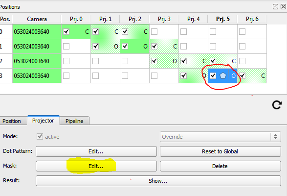 If all selected projectors for a position are marked green (as in the image from step 12). The capturing of the current position is finished.