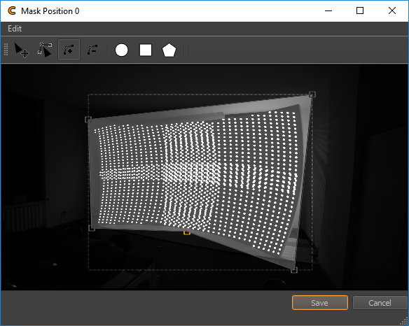 The Mask Editor allow to create vector based masks for captured camera images. It shows a camera image and allows to paint on top to mask regions.