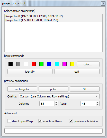 The projector control provides advanced previews and basic control of the PatternGenerator channels.