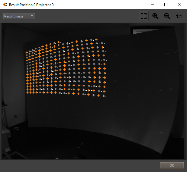 Shows a detailed result of dot pattern recognition and allows to find obstacles disturbing lights or reflections that might have negatively influenced the calibration.