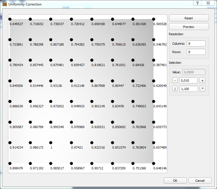 Uniformity Correction Editor allows to manually adjust uniformity correction maps for each projector.