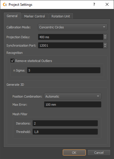 When all testpatterns are captured, a 3d model of the projection will be generated. There are different strategies possible which have their pros and cons depending on calibration situation. The strategy and its settings can be adjusted here.