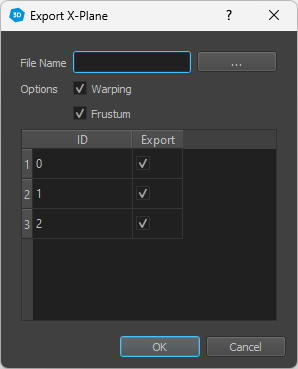Export Frustum settings and warping to X-Plane.