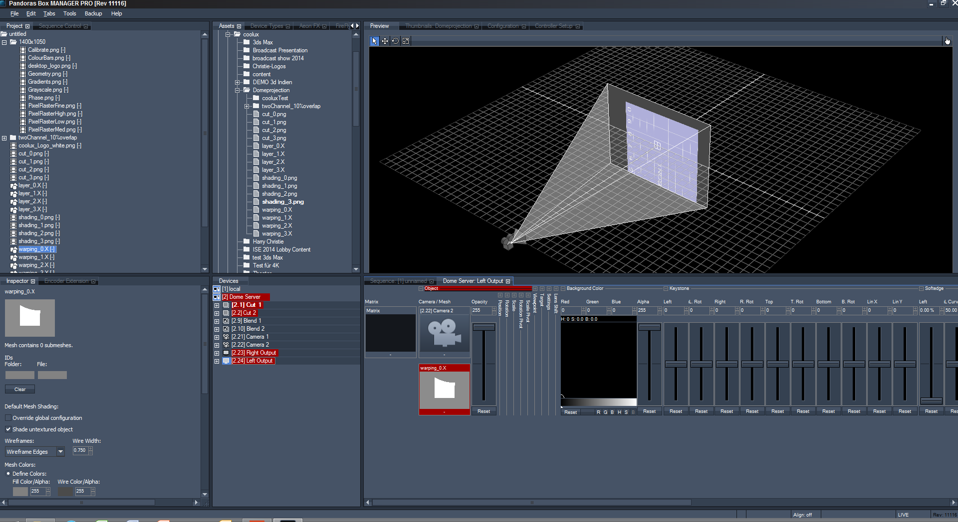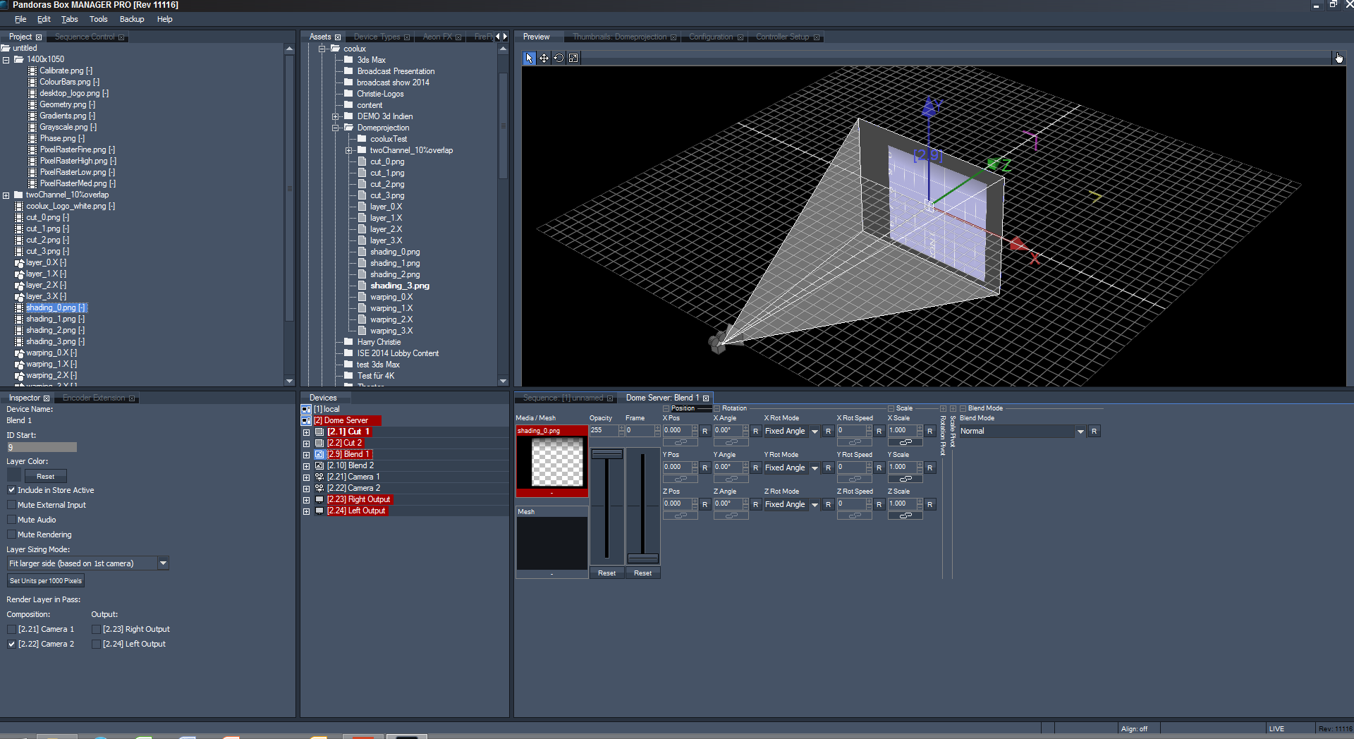 layer_*.Xto mesh slots of all layers in the corresponding device, that should contain presplit content or the shading images. Images placed on these layers should now perfectly match the cameras view (in Pandoras Box 5 this is optional since the layers match the default camera by default).