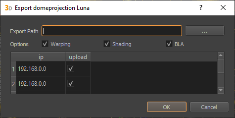 The Domeprojection Luna exporter supports export of warping, blending and black-level correction for domeprojection Luna warpbox.
