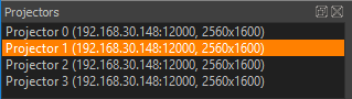 The projectors dock widget shows a list of all projectors in the current project and allows to edit projector related settings.