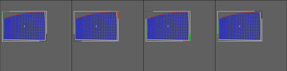 Spin cutting rectangles can be used to quickly fix auto generated cutting rectangles, whose orientation does not match the orientation of the projector mesh. For some warp units it is important that the cutting rectangle is aligned correctly, since the amount of warping that can be applied on these units is limited.