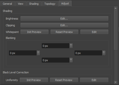 The shading-tab of the project-settings dialog allows to set several global parameters that influence blending and black-level-adjust calculations.
