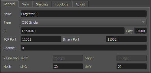 access to many parameters of the projection setup, like IP addresses, image resolution and projector resolution