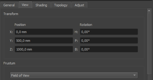 First there are the general settings, which reflect the physical setup. Usually all data here is filled out in advance through the calibration process and its setup.
