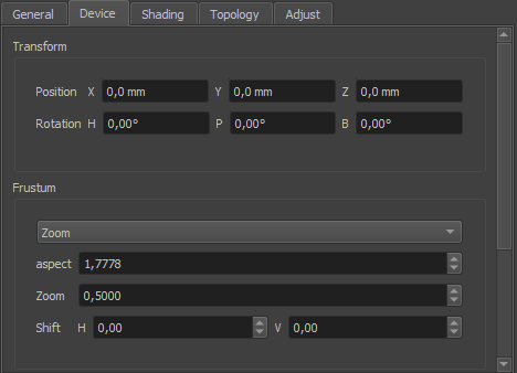 First there are the general settings, which reflect the physical setup. Usually all data here is filled out in advance through the calibration process and its setup.