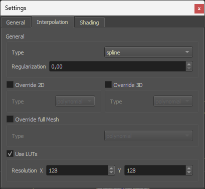 Settings/Interpolation/General/Typeto spline, since for projectionmapping usually only a small part of each projector is captured and the generated warping needs to be extrapolated quite far and need to contain high frequent details.Hit