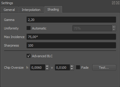 The shading-tab of the project-settings dialog allows to set several global parameters that influence blending and black-level-adjust calculations.