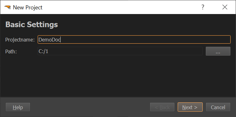 Name of the project. A new folder with that name will be created and all project related data will be saved into that folder including a