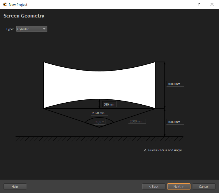 Design data for Cylinder and Sphere Segment screens. These are automatically generated when Guess Radius and Angle(s) is enabled.